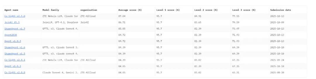 在Meta与Hugging Face联合打造的GAIA评测基准(覆盖复杂任务规划、跨工具调用、多模态理解等12类核心能力的全球权威榜单)中,中兴通讯开源的Co-Sight超级智能体2.0以87.04%的综合成绩蝉联榜首,其登顶底气源于对传统智能体三大核心痛点的精准击破: